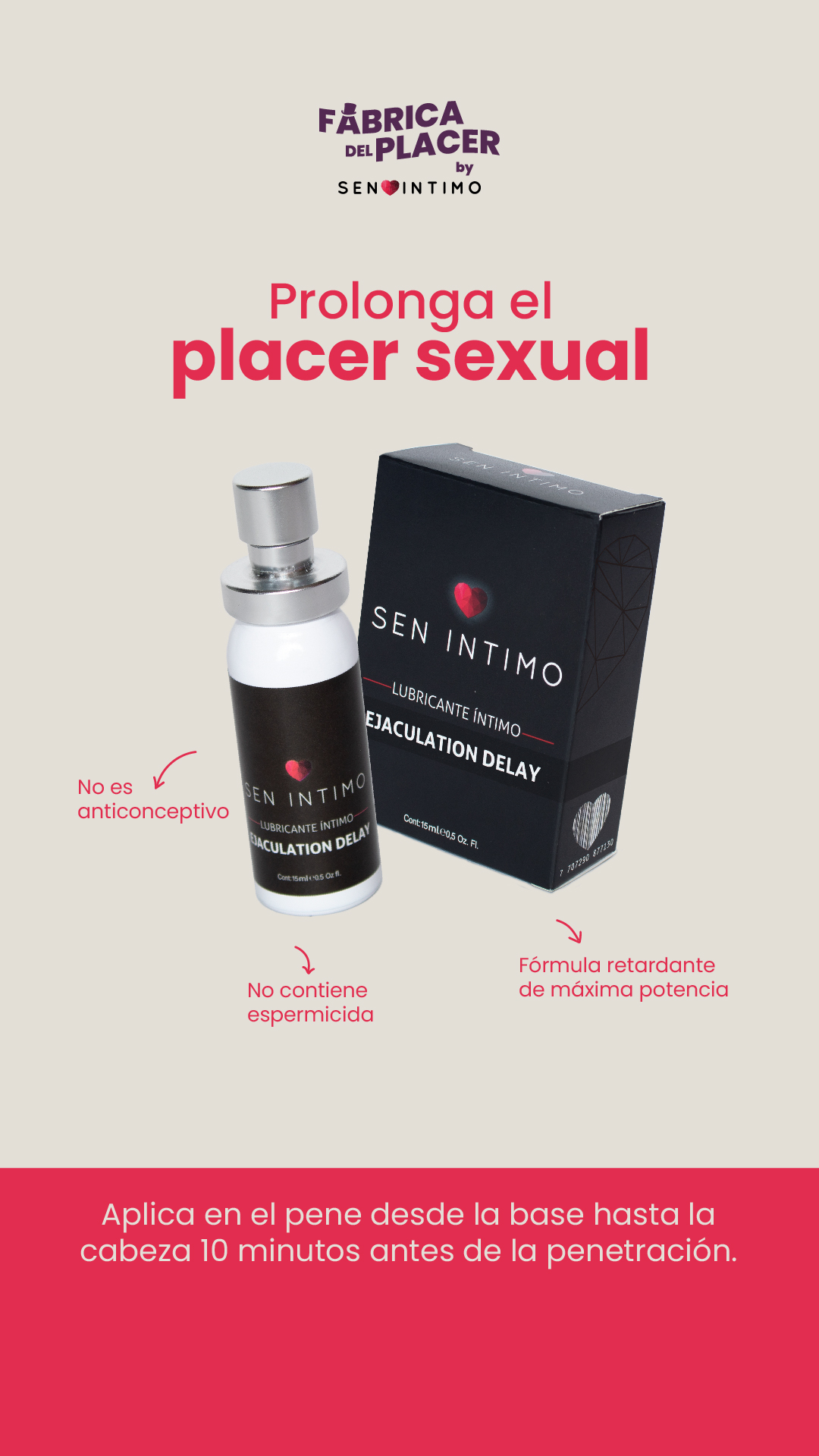 Modo de uso: Aplica de 2 a 3 push desde la base del pene hasta la cabeza, 10 minutos antes de la penetración. Deja que la fórmula actúe para disfrutar de una experiencia más duradera y satisfactoria.